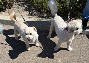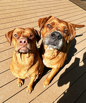 These adorable Corgi/Poodle mixes are 6 years old. Although they don’t look alike, they are brother and sister. They are very bonded and must be adopted together. They are good with people and other dogs. They do not do well with cats.